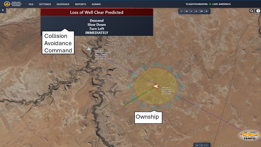 FlightHorizon TEMPO provided a ground-based, real-time airspace awareness display integrating surveillance and weather data to support safe BVLOS flight testing.