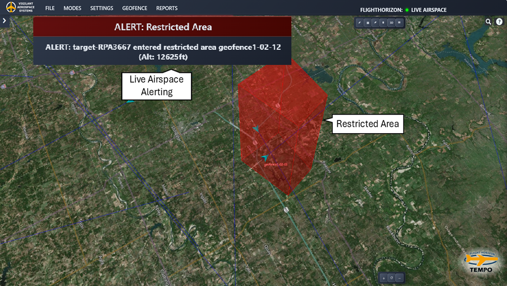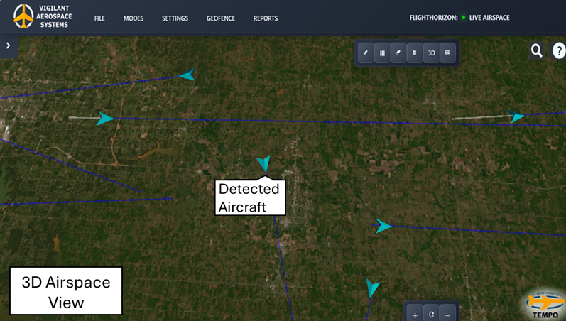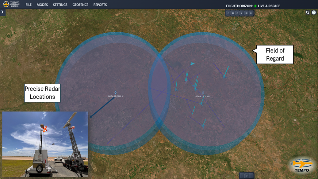 Vigilant Aerospace Systems FlightHorizon TEMPO is in use at Clinton-Sherman Airport for the Oklahoma Department of Aerospace and Aeronautics to strengthen the site’s long-range UAS test range capability. FlightHorizon TEMPO monitors and manages the installed radars, giving operators a unified view of air traffic across the test area.