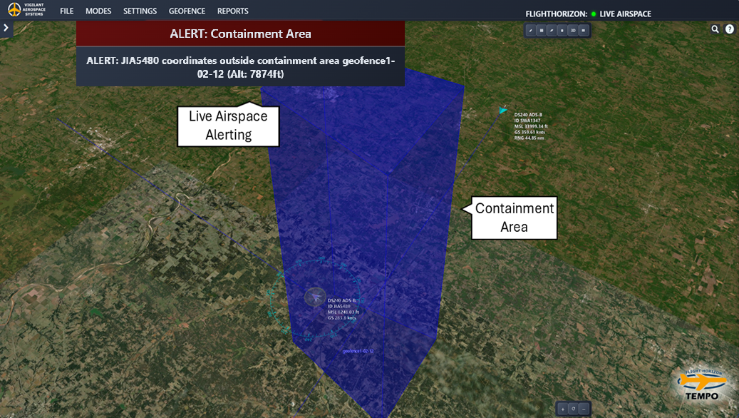 Set altitude-defined containment geofences around your mission aircraft and receive instant alerts if your ownship exits the approved operating area.